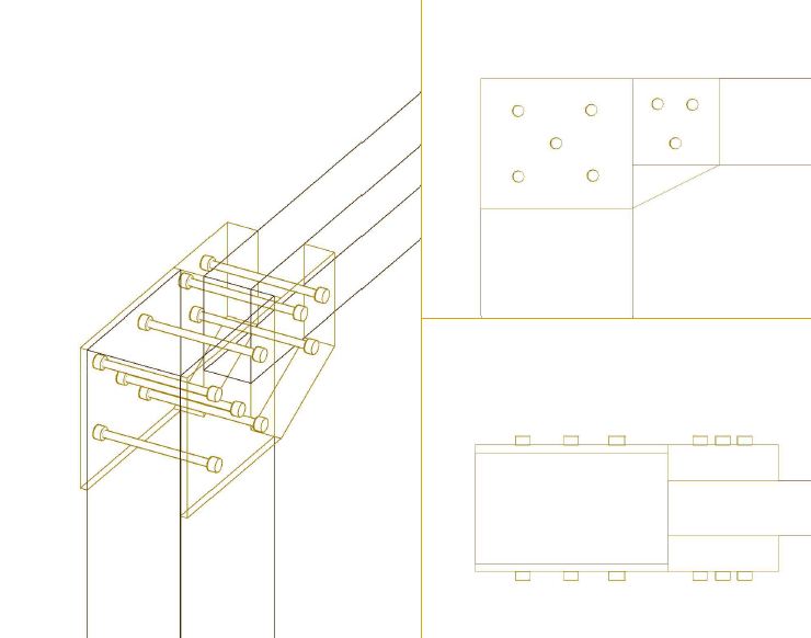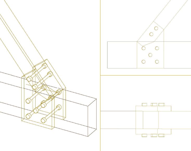 Sekitar pukul 3 gue bangun dan nyelesain gambar sambungan sampe jam 7. Dalam waktu singkat gue seolah dipaksa untuk belajar AutoCAD 3D. Sambungan yang kita rencanakan emang agak nyentrik, entah gimana jumlah baut yang dibutuhkan banyak banget. Jadi sambungan kuda-kuda yang kita rencanakan kombinasi antara sambungan gigi dengan pelat buhul. Saking bingungnya dan pengetahuan gue mengenai sambungan juga masih cupu banget, bahkan ada satu sambungan yang gue kira bentuknya kayak bajunya pharaoh gitu haha. Oke, ini beberapa sambungan yang berhasil gue gambar.