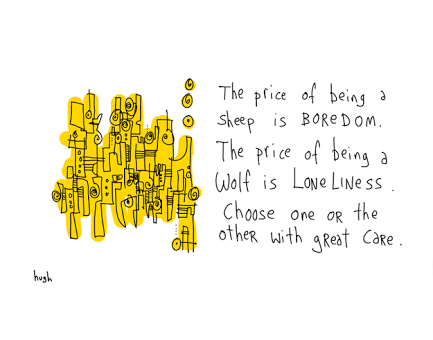 “The price of being a sheep is boredom. The price of being a wolf is loneliness. Choose one or the other with great care.”